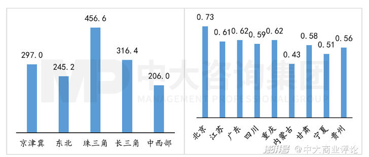 左:圖1 各地區(qū)工業(yè)用地成交價(jià)格(百萬(wàn)元/平方米),右:圖2 各城市電價(jià)(元/度),數(shù)據(jù)來(lái)源:WIND