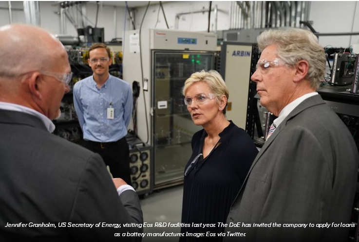 美國能源部長Jennifer Granholm去年參觀了Eos公司的研發(fā)設(shè)施,該公司作為電池制造商將獲得美國能源部貸款