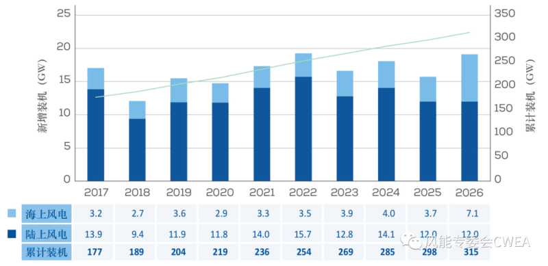 在低增長(zhǎng)情景下,2022―2026年歐洲預(yù)計(jì)將新增風(fēng)電裝機(jī)89GW,年均新增裝機(jī)17.8GW。其中,歐盟年均新增裝機(jī)13.3GW。