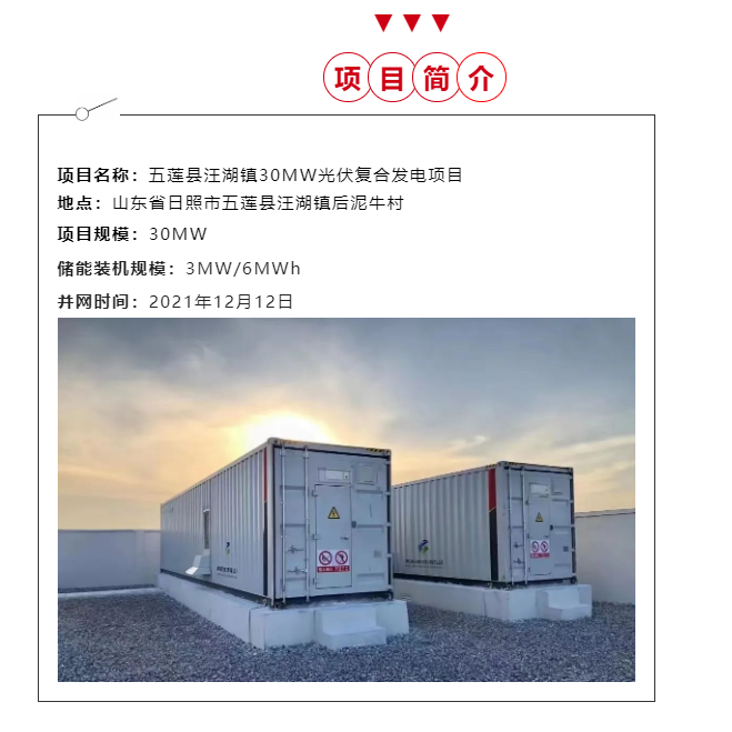 五蓮縣汪湖鎮(zhèn)30MW光伏復(fù)合發(fā)電項(xiàng)目位于山東省日照市五蓮縣汪湖鎮(zhèn)后泥牛村,2020年7月正式開工建設(shè),歷時(shí)一年多,于2021年12月12日順利并網(wǎng)。根據(jù)山東省相關(guān)政策要求,科華數(shù)能為該項(xiàng)目配置了10% 2小時(shí),即3MW/6MWh儲能系統(tǒng)解決方案。