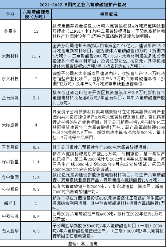 瞄準(zhǔn)全球新能源汽車產(chǎn)業(yè)新周期需求,以及六氟磷酸鋰?yán)麧櫬?,除了原有六氟磷酸鋰企業(yè)之外,大量新進(jìn)入者也涌入到六氟磷酸鋰賽道中來。