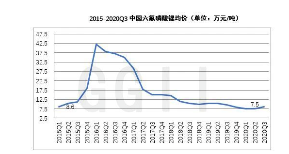 然而不及預(yù)期的是,新能源汽車補(bǔ)貼的滑坡,動(dòng)力電池價(jià)格向下,疊加六氟磷酸鋰新增產(chǎn)能的集中釋放,市場供過于求致使六氟磷酸鋰價(jià)格一路暴跌,至2020年Q3下探至7.5萬元/噸。