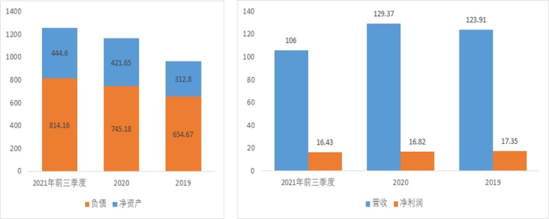 截至 2021 年末,國網(wǎng)公司在運(yùn)抽水蓄能電站超過30座,裝機(jī)達(dá)到2630萬千瓦,占全國在運(yùn)抽蓄裝機(jī)的72.3%;在建電站也達(dá)30多座,裝機(jī)在4000萬千瓦以上,力爭2030年運(yùn)行裝機(jī)達(dá)到1億千瓦。在運(yùn)常規(guī)水電廠6座,裝機(jī)容量495.4萬千瓦。從國網(wǎng)新源發(fā)布的2021年三季報(bào)和2020年年報(bào),近年財(cái)務(wù)情況如下圖: