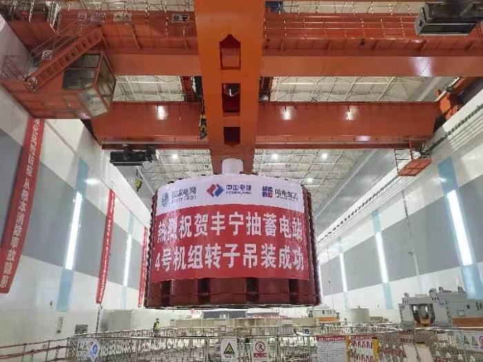 中國儲能網(wǎng)訊:5月9日,由水電七局承擔安裝任務的世界總裝機容量最大的抽水蓄能電站——河北豐寧抽水蓄能電站一期工程第四臺(4號)機組轉(zhuǎn)子順利吊裝就位。