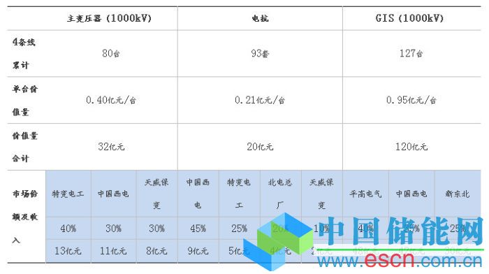 4條交流特高壓線路,平高電氣、中國西電、特變電工受益情況: