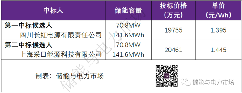 中國儲能網(wǎng)訊:5月13日,華潤電力隨縣文昌化學儲能電站工程一期項目發(fā)布儲能系統(tǒng)設備中標公告,四川長虹電源有限責任公司以19755萬元成為第一中標候選人,該項目儲能容量70.8MW/141.6MWh,折合單價1.395元/Wh,中標結(jié)果如下: