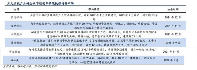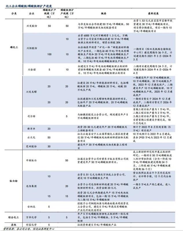 跨界布局的化工企業(yè)則有望發(fā)揮自帶一體化的優(yōu)勢(shì)。如龍佰集團(tuán)、安納達(dá)等鈦白粉企業(yè)的鐵源優(yōu)勢(shì);興發(fā)集團(tuán)、云天化等磷化工企業(yè)的磷源優(yōu)勢(shì)。