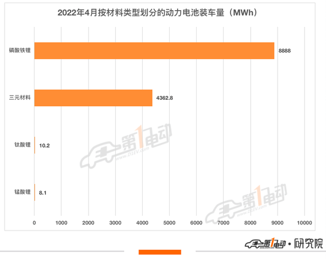 分電池類型來看,4月三元電池裝車量4.4GWh,占總裝車量32.9%,同比下降15.6%,環(huán)比下降46.9%;磷酸鐵鋰電池裝車量8.9GWh,占總裝車量67.0%,同比增長177.2%,環(huán)比下降32.6%。