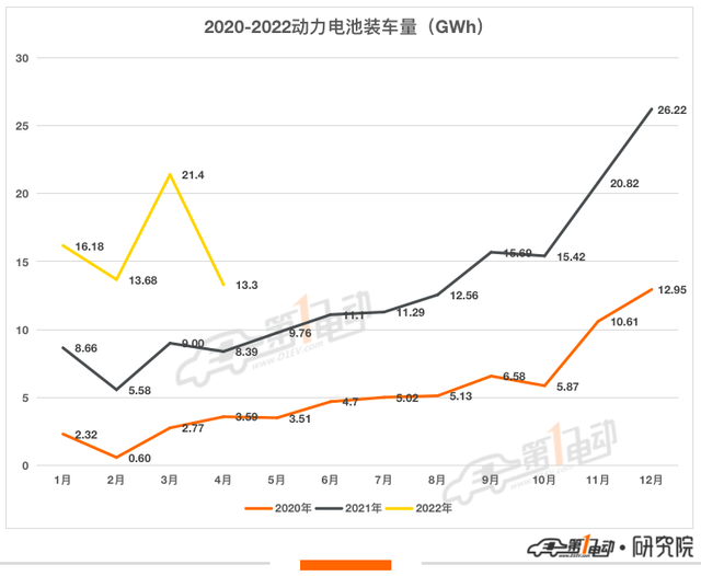 根據(jù)中國汽車動力電池產(chǎn)業(yè)創(chuàng)新聯(lián)盟(簡稱“電池聯(lián)盟”)發(fā)布的數(shù)據(jù),4月,我國動力電池裝車量13.3GWh,同比增長58.1%,環(huán)比下降38.0%。1-4月,我國動力電池累計(jì)裝車量64.5GWh, 累計(jì)同比增長104.1%。
