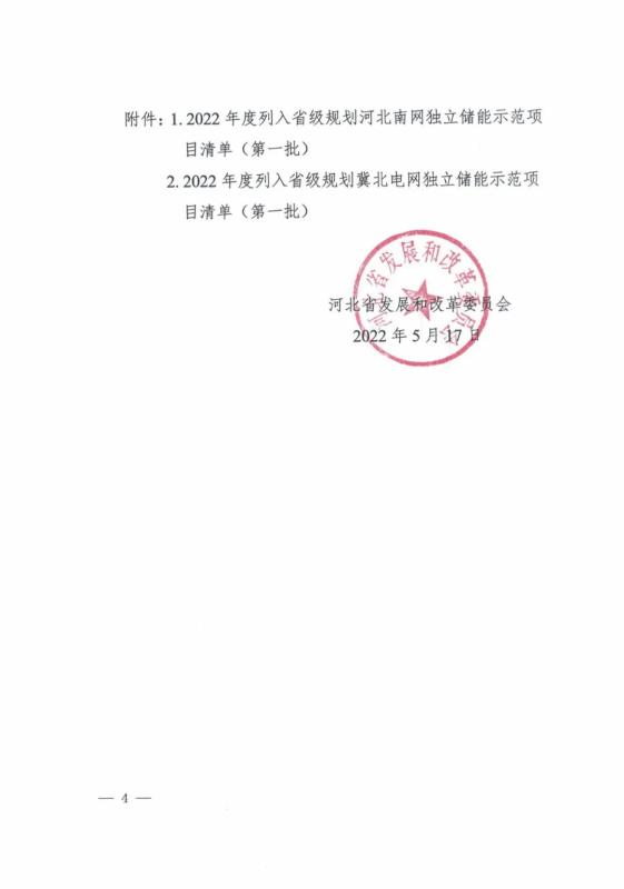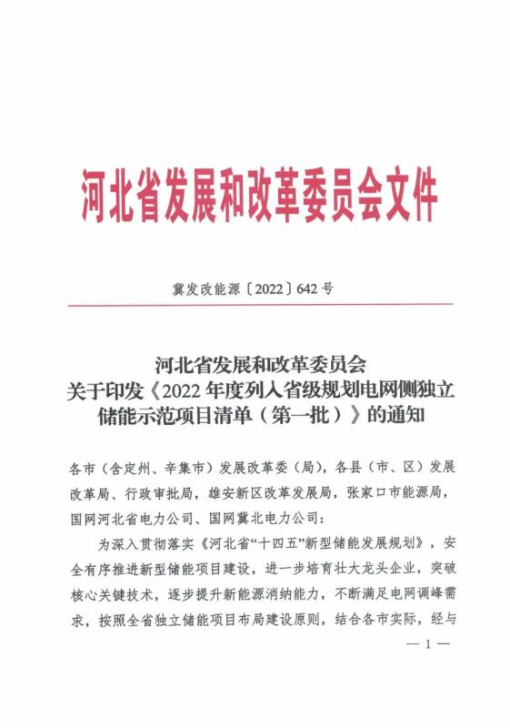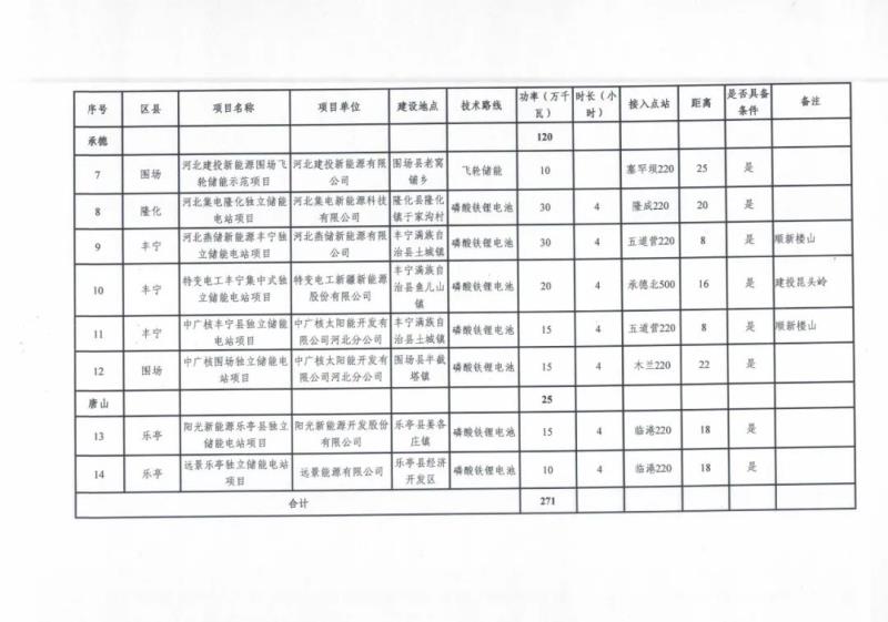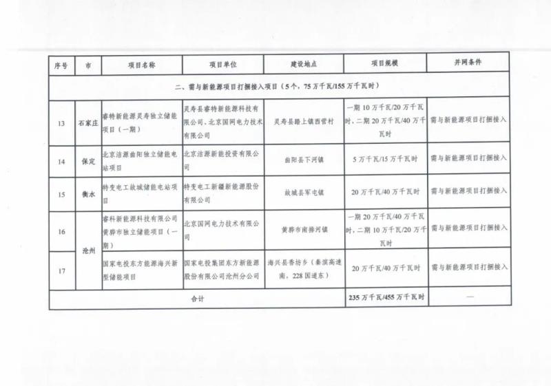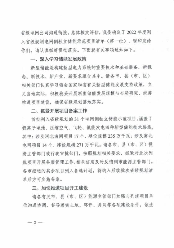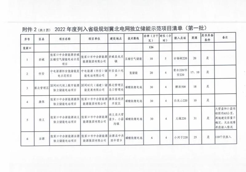2022年度列入省級規(guī)劃冀北電網(wǎng)獨立儲能示范項目清單(第一批):
