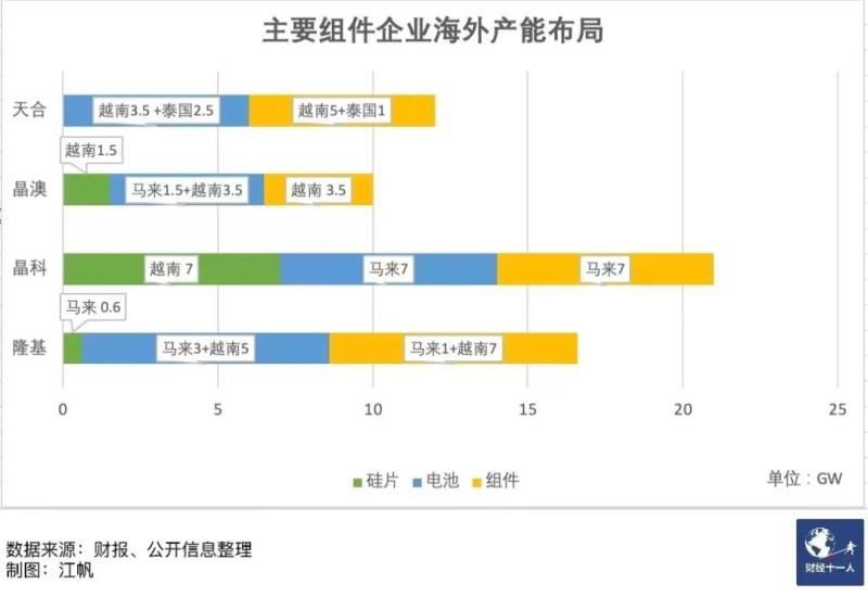中國光伏企業(yè)自 2012 年開始“走出去” ,初期多為投資成本少的組件廠。從2016年起,為規(guī)避國際貿(mào)易保護風(fēng)險,光伏企業(yè)投資重點向上游制造延伸,在越南、馬來西亞、泰國等亞太地區(qū)的產(chǎn)品制造配套體系趨于完善。
