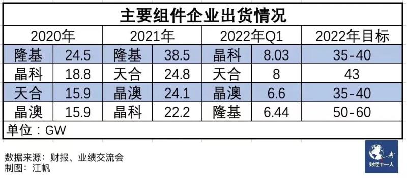 隨著晶科2022年1月登陸科創(chuàng)板,組件四巨頭在A股集結(jié)完畢。在同等的估值與融資機會之下,晶澳、天合、晶科開始加速追趕。