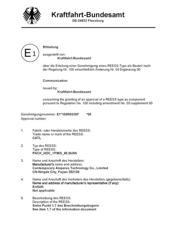 中國儲能網(wǎng)訊:近日,寧德時代獲得德國交通部頒發(fā)的全球首張歐洲經(jīng)濟委員會R100.03動力電池系統(tǒng)證書。