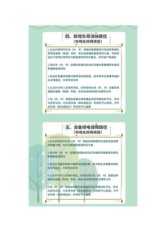 二是第(一)條路徑中項目為保障性并網(wǎng)項目,光伏(向大電網(wǎng)送電)項目由自治區(qū)發(fā)展改革委備案,風電項目由地(州、市)發(fā)展改革委核準;第(二)(三)(四)(五)(六)條路徑中項目,為通過源網(wǎng)荷儲一體化、多能互補等方式建設的市場化并網(wǎng)項目。根據(jù)《國家發(fā)展改革委 國家能源局關于完善能源綠色低碳轉(zhuǎn)型體制機制和政策措施的意見》(發(fā)改能源〔2022〕206號)中“深化能源領域‘放管服’改革,優(yōu)化清潔低碳能源項目核準和備案流程”精神,自治區(qū)發(fā)展改革委經(jīng)組織國家能源局新疆監(jiān)管辦、自治區(qū)自然資源廳、生態(tài)環(huán)保廳、國網(wǎng)新疆電力有限公司等相關部門和單位,按政策、技術和安全等要求論證,將符合要求的項目列入自治區(qū)項目名單后,統(tǒng)一由地(州、市)發(fā)展改革委核準(備案);第(七)條路徑中項目為市場化并網(wǎng)項目,由各地(州、市)發(fā)展改革委核準(備案)。