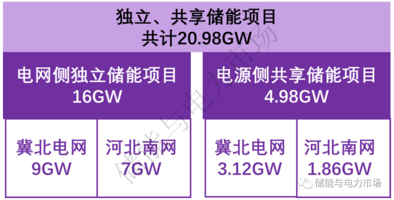 依據(jù)這兩個(gè)方案,河北省“十四五”期間將布局儲(chǔ)能電站共計(jì)20.98GW。其中電網(wǎng)側(cè)獨(dú)立儲(chǔ)能電站16GW,電源側(cè)共享儲(chǔ)能項(xiàng)目4.98GW。
