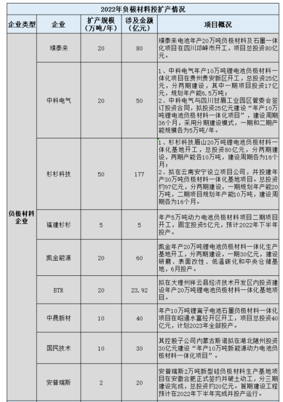 中國儲能網(wǎng)訊:2022年以來,市場對于負(fù)極材料的熱情只增不減,新老玩家不斷加碼,多股勢力不斷涌入,賽道愈發(fā)擁擠。