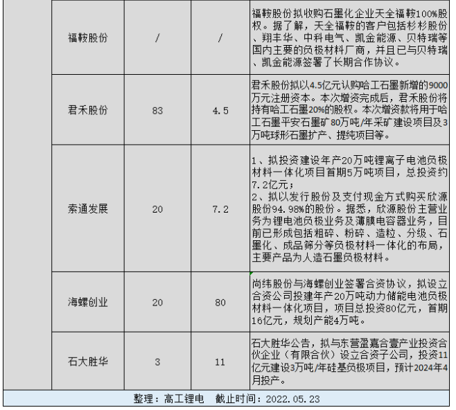 在此情境下,寧德時代、億緯鋰能等動力電池布防負(fù)極材料,有利于維穩(wěn)自身供應(yīng)鏈,提高成本議價權(quán);杉杉股份、中科電氣等負(fù)極材料相關(guān)企業(yè)加碼,則有利于提高自身生產(chǎn)能力,形成規(guī)?;?yīng);索通發(fā)展、君禾股份等新玩家入局,則可打造新的業(yè)績增長曲線。