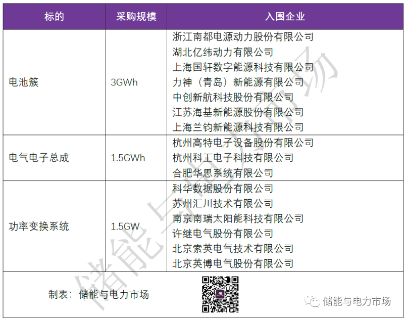 儲(chǔ)能電池簇、電氣電子、PCS入圍供應(yīng)商結(jié)果