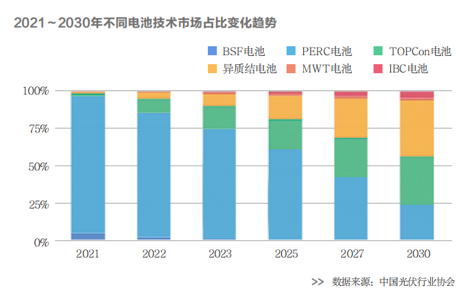 市場機構(gòu)預(yù)測,TOPCon技術(shù)是當(dāng)下N型電池中最具有成本優(yōu)勢的技術(shù)路線之一,可能從今年開始實現(xiàn)規(guī)?;瘧?yīng)用,預(yù)計明年將全面具備與PERC技術(shù)相當(dāng)?shù)木C合優(yōu)勢。