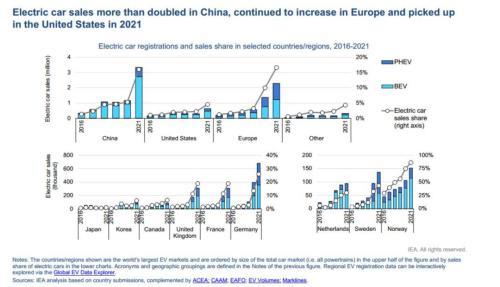 2021年全球主要車(chē)市電動(dòng)車(chē)銷(xiāo)量表現(xiàn)