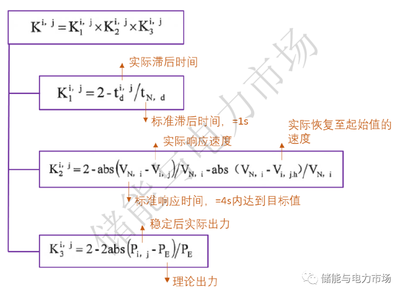 性能指標(biāo)K,由一次調(diào)頻響應(yīng)時間指標(biāo)K1、一次調(diào)頻響應(yīng)速率指標(biāo)K2、一次調(diào)頻響應(yīng)精度指標(biāo)K3決定。