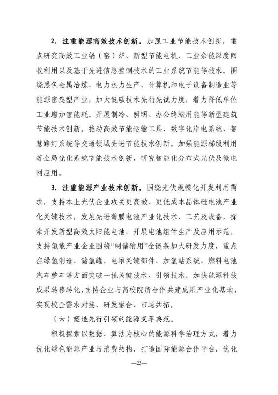 加大新能源產(chǎn)業(yè)發(fā)展支持力度,重點(diǎn)在光伏、氫能、新型儲(chǔ)能、智能電網(wǎng)、新能源汽車動(dòng)力電池、能源互聯(lián)網(wǎng)產(chǎn)業(yè)“六大領(lǐng)域”出臺(tái)一批政策措施,構(gòu)建“一產(chǎn)業(yè)、 一規(guī)劃、一政策、一平臺(tái)、一基金、若干重點(diǎn)園區(qū)”的發(fā)展模式, 統(tǒng)籌支持技術(shù)研發(fā)、能源開(kāi)發(fā)、模式創(chuàng)新、示范應(yīng)用和產(chǎn)業(yè)發(fā)展。