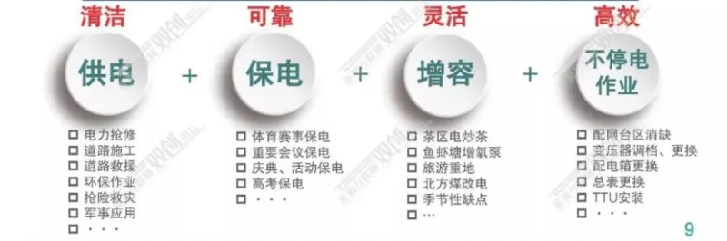 可應(yīng)用于城市電網(wǎng)應(yīng)急供電;重大自然災(zāi)害救險(xiǎn)、抗疫等應(yīng)急保電;緊缺臨時(shí)增容;精電臨時(shí)供給;電網(wǎng)互動(dòng)等多個(gè)場(chǎng)景。