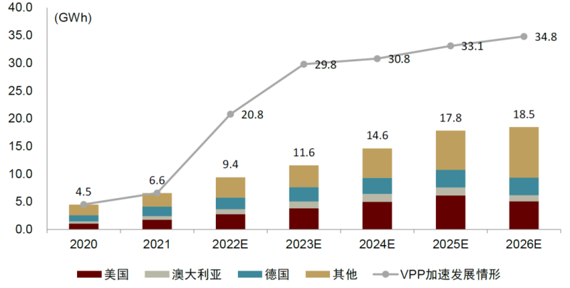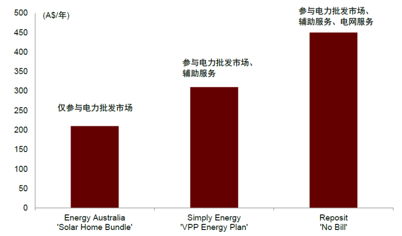 ?虛擬電廠:虛擬電廠(Virtual Power Plant,VPP)通過聚合儲能等分布式能源,可以實現(xiàn)對電網(wǎng)穩(wěn)定輸電,并提供輔助服務(wù)、需求側(cè)響應(yīng)獲取收益,同時通過長期合約和金融工具,降低安裝成本門檻,加速家庭儲能滲透率提升。如澳大利亞、美國加州均對戶用光儲系統(tǒng)參與虛擬電廠項目提供約50-100美元/KW/年不等的收益。
