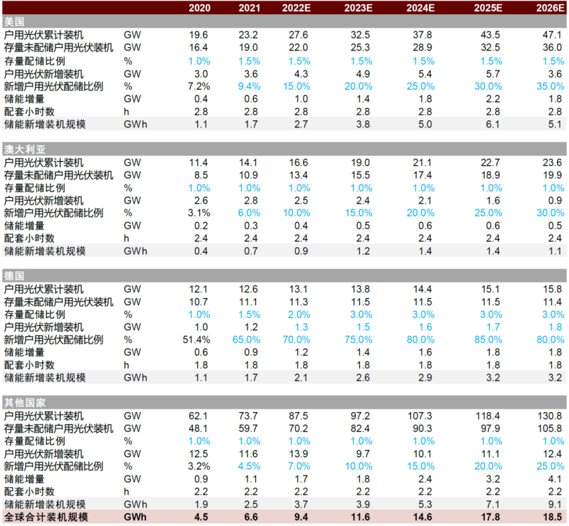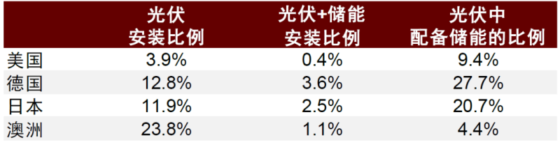 圖表3:2021年美德日澳戶用光伏及儲能滲透率一覽