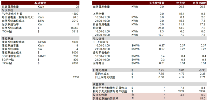圖表26:美國加州家儲經(jīng)濟(jì)性測算