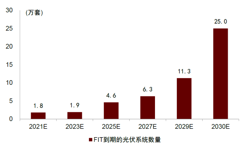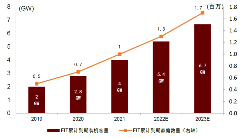 圖表17:日本FIT累計到期家庭戶數(shù)及裝機(jī)容量