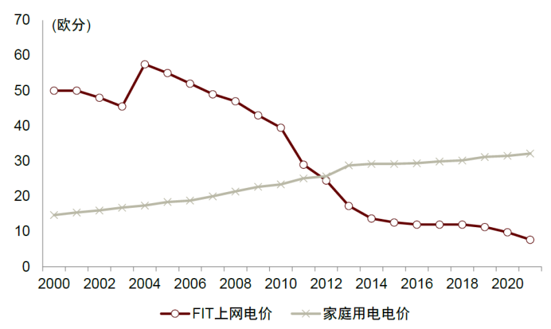 圖表22:德國FIT上網(wǎng)電價持續(xù)下降