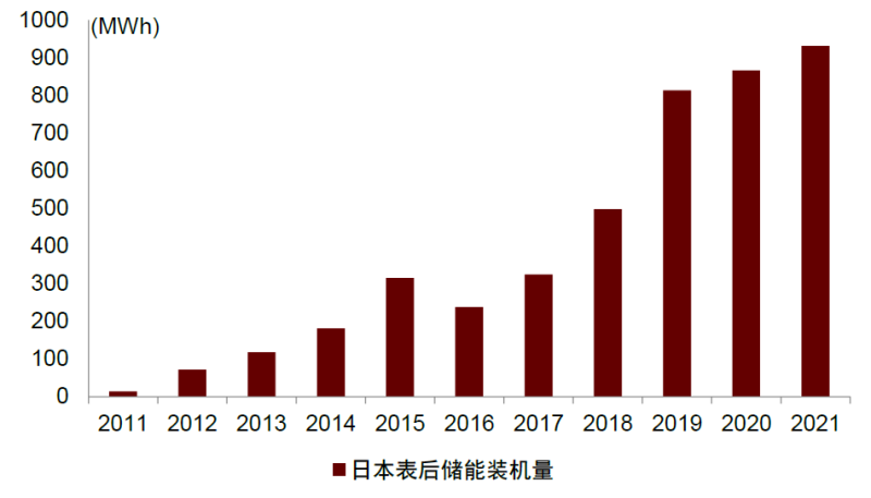 圖表15:日本表后儲能裝機(jī)規(guī)模