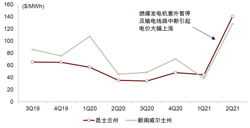 家儲提升家庭供電可靠性。家儲可在發(fā)電廠中斷或發(fā)生極端天氣時提供應(yīng)急電源:1)發(fā)電廠中斷:2021年5月下旬Callide燃煤發(fā)電廠爆炸導(dǎo)致基本負(fù)荷停電,昆士蘭Stanwell、Gladstone,新南威爾士州Bayswater等燃煤發(fā)電廠均出現(xiàn)意外停電[2],導(dǎo)致2021年二季度昆士蘭州、新南威爾士州和維多利亞州累計出現(xiàn)近五百次基本負(fù)荷中端,發(fā)電廠意外暫停及輸電線路中斷使得昆士蘭州、新南威爾士州二季度平均價格分別同比上漲297%/184%。2)極端天氣:2021年6月維多利亞州發(fā)生嚴(yán)重風(fēng)暴致使丹德農(nóng)山脈數(shù)千個家庭連續(xù)數(shù)周斷電[3],家庭光儲系統(tǒng)維持家庭供電可靠與穩(wěn)定性。