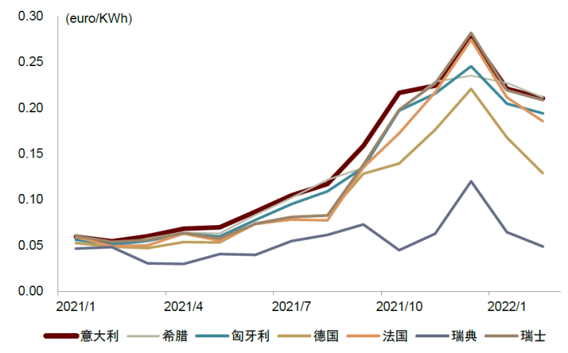 高電價驅(qū)動戶用光伏裝機(jī)持續(xù)增長,同時催生儲能經(jīng)濟(jì)性。德國是目前歐洲居民零售電價最高的國家之一,常年維持在30歐分/KWh的水平,據(jù)SolarPower Europe測算,德國家庭安裝光伏或戶用光儲系統(tǒng)度電成本已遠(yuǎn)低于德國零售電價。同時,2021年下半年以來,能源需求增長、地緣政治影響供給,歐洲天然氣價格大幅上漲并帶動德國批發(fā)電價持續(xù)上漲,進(jìn)一步推高德國居民零售電價,高居民零售電價直接驅(qū)動戶用光伏及儲能裝機(jī)量。