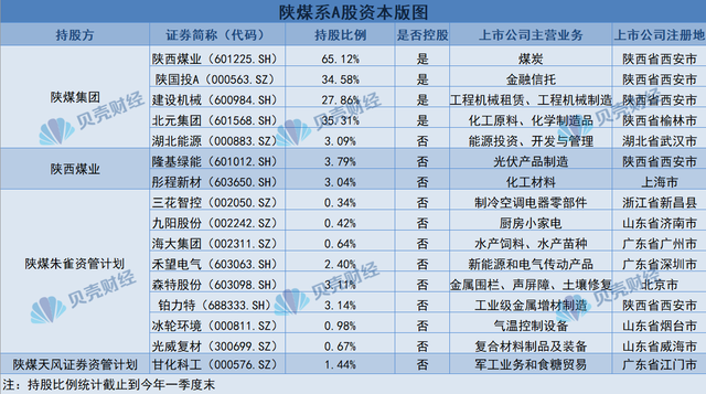 陜煤集團(tuán)為上交所主板上市公司陜西煤業(yè)控股股東,截至今年一季度末持有陜西煤業(yè)65.12%股權(quán)。