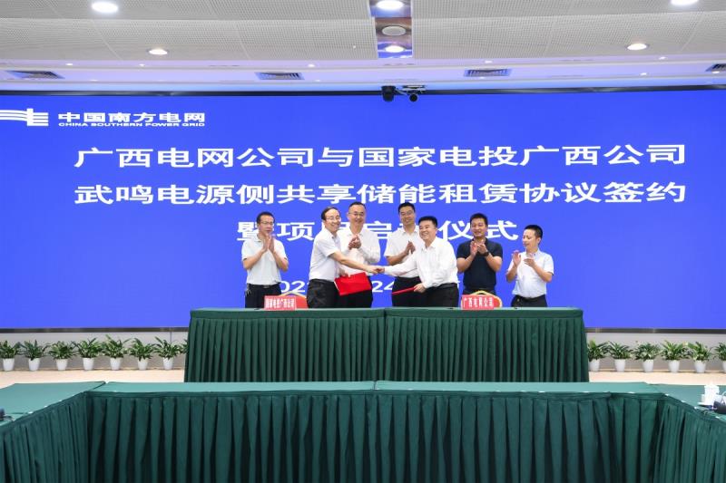 中國儲能網(wǎng)訊:5月24日,國家電投集團廣西公司(以下簡稱“公司”)與廣西電網(wǎng)公司(以下簡稱“廣西電網(wǎng)”)簽訂南寧武鳴共享儲能電站租賃協(xié)議,廣西電網(wǎng)總會計師王永斌、公司副總經(jīng)理沈才山出席簽訂儀式并致辭,自治區(qū)發(fā)改委、南方能監(jiān)局廣西辦有關(guān)領(lǐng)導參加儀式。