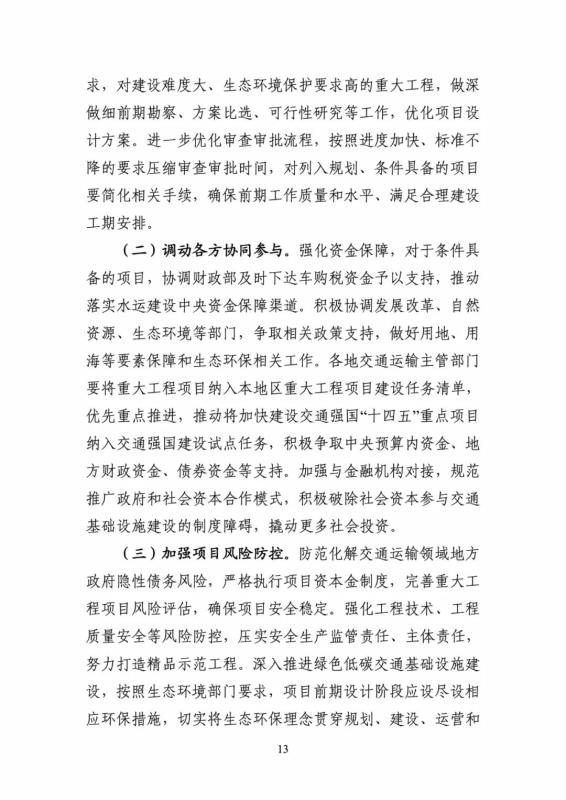 為深入貫徹黨中央、國務院關(guān)于加快推進“十四五”規(guī)劃重大工程項目建設的決策部署,經(jīng)交通運輸部同意,現(xiàn)將《關(guān)于扎實推動“十四五”規(guī)劃交通運輸重大工程項目實施的工作方案》印發(fā)給你們。請各單位各部門加強組織領(lǐng)導,壓緊壓實責任,細化實化工作措施,認真抓好貫徹落實,確保交通運輸重大工程項目建設取得實效,為保持經(jīng)濟運行在合理區(qū)間、保持社會大局穩(wěn)定作出積極貢獻,以優(yōu)異成績迎接黨的二十大勝利召開。