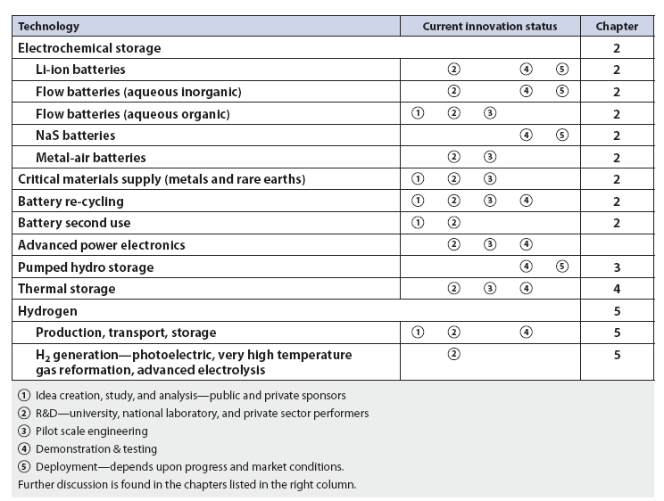 表1 選定儲(chǔ)能技術(shù)當(dāng)前創(chuàng)新狀況調(diào)查結(jié)果摘要