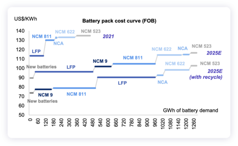 ▲圖5.不同化學(xué)體系的成本曲線(2021、2025和2025考慮回收)