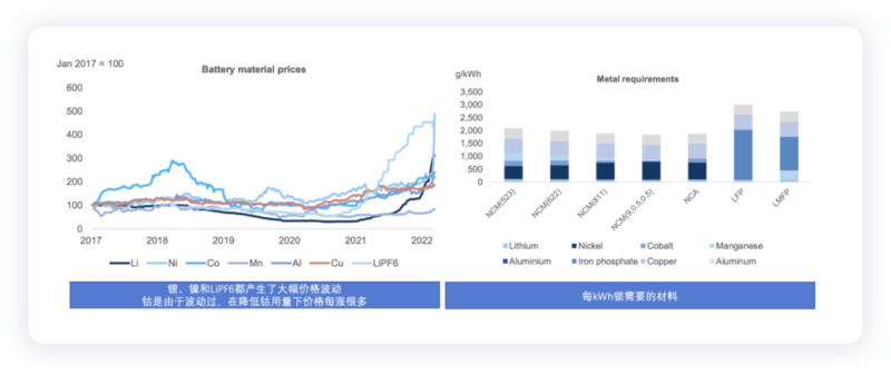制造電池是一項(xiàng)復(fù)雜的業(yè)務(wù),需要保護(hù)各種原材料和管理Pack的供應(yīng)鏈,這些上有主材會隨著化學(xué)體系的發(fā)展而變化。不斷增長的需求、零部件短缺和不斷上漲的原材料價格正在挑戰(zhàn)十年電池價格下降的客觀規(guī)律。