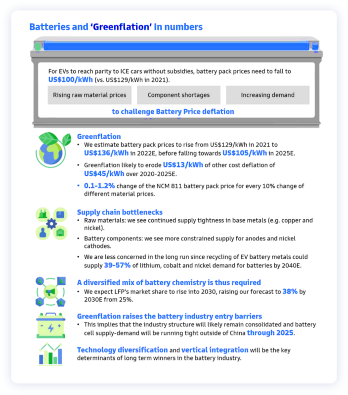 中國儲能網(wǎng)訊:高盛發(fā)布了《Global Batteries: The Greenflation Challenge 》和《Green Metals Battery Metals Watch: The end of the beginning 》闡述了一些觀點(diǎn),抽取一些內(nèi)容和大家分享下。