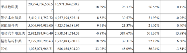 公司年報(bào)顯示,2021年欣旺達(dá)消費(fèi)類鋰電池業(yè)務(wù)收入保持增長,消費(fèi)類電芯業(yè)務(wù)的生產(chǎn)規(guī)模逐步擴(kuò)大,公司手機(jī)數(shù)碼類業(yè)務(wù)實(shí)現(xiàn)收入207.95億元,同比去年增長26.77%;筆記本電腦電池業(yè)務(wù)持續(xù)增長,2021年實(shí)現(xiàn)收入54.19億元,同比增長30.57%。