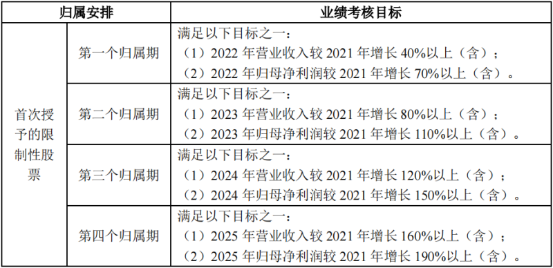 對(duì)于市場(chǎng)展望,陽(yáng)光電源依舊十分樂(lè)觀:大幅調(diào)高了2022年?duì)I收預(yù)期。股權(quán)激勵(lì)也顯露出這一點(diǎn):幾個(gè)歸屬期要求逐年增加。從往年看,尤其是歸母凈利潤(rùn)一項(xiàng),除了上市早期及2017、2020年等個(gè)別年份,能夠達(dá)標(biāo)的并不多。