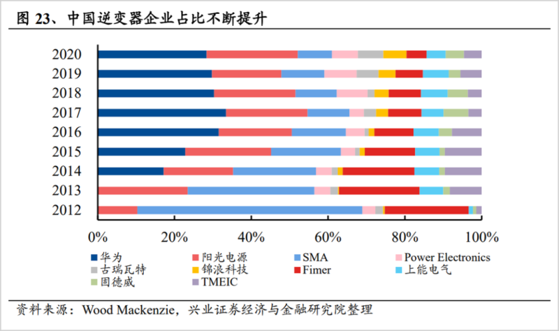 另外,技術(shù)領(lǐng)先也是實(shí)現(xiàn)趕超的重要原因,尤其以陽(yáng)光電源和華為為引領(lǐng)。
