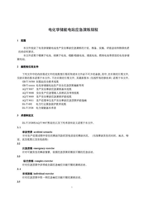 國家標(biāo)準(zhǔn)《電化學(xué)儲能電站應(yīng)急演練規(guī)程》征求意見
