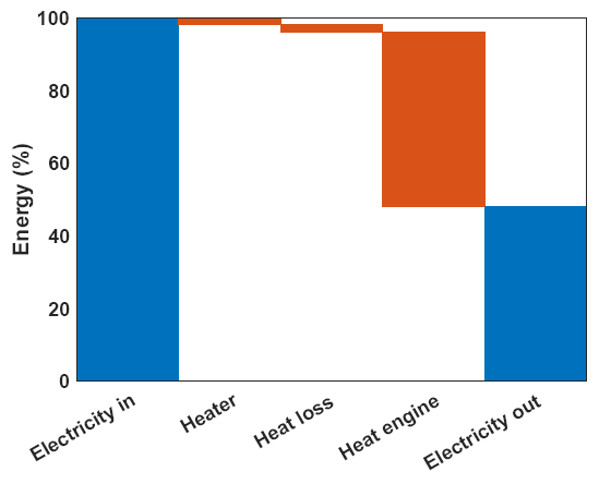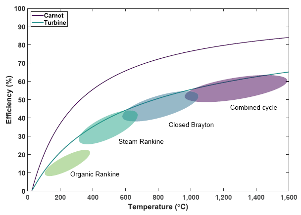 正如本文討論的那樣,重點是TES中的放電步驟,較高的蓄熱溫度可以提高熱效率(將存儲的熱量轉(zhuǎn)換回電能)。