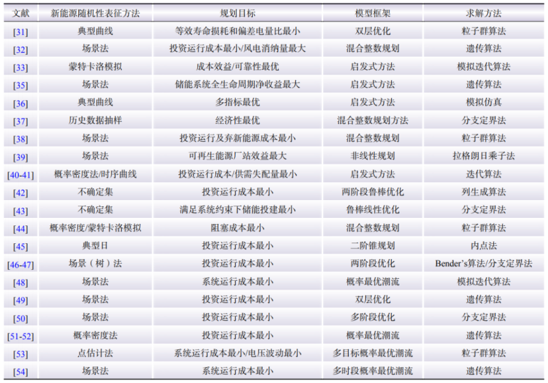 表1 源側(cè)/網(wǎng)側(cè)儲(chǔ)能規(guī)劃研究概述