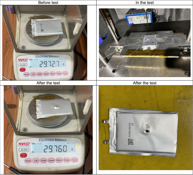 第三方測(cè)試機(jī)構(gòu)報(bào)告示圖(針刺前后電芯狀態(tài))