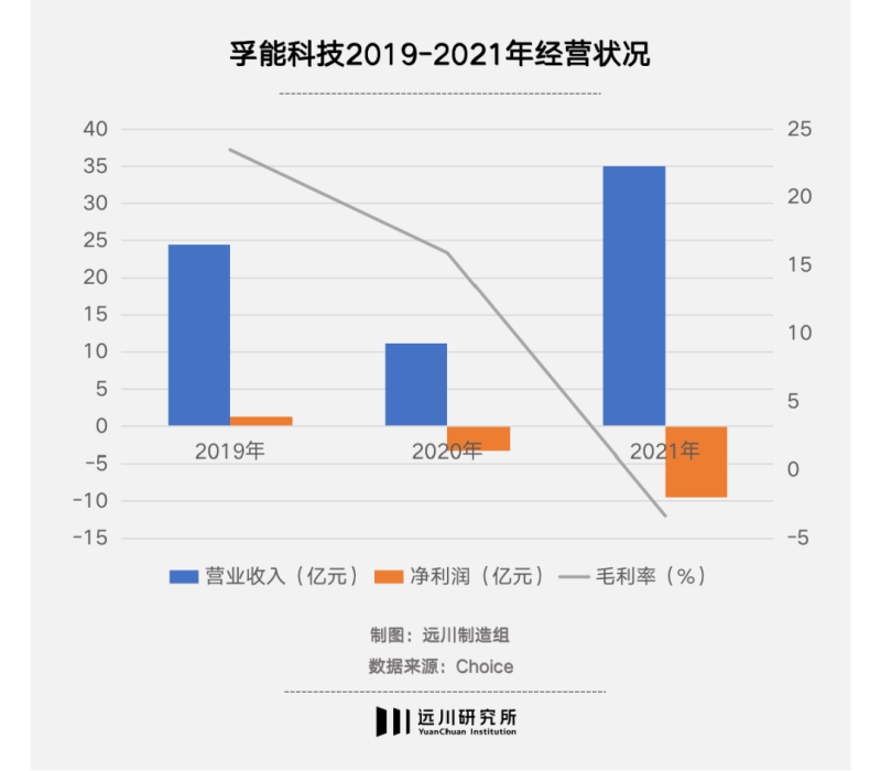 去年,孚能科技營收突破35億元,但歸母凈利潤為-9.74億元、扣非后歸母凈利潤為-12.85億元,和2020年相比大幅擴大。原因無外乎三點:以北汽為首的大客戶流失;以碳酸鋰為首的原材料價格暴漲;動力電池打折導致產品毛利率驟降為-19%,和行業(yè)平均水平嚴重倒掛。